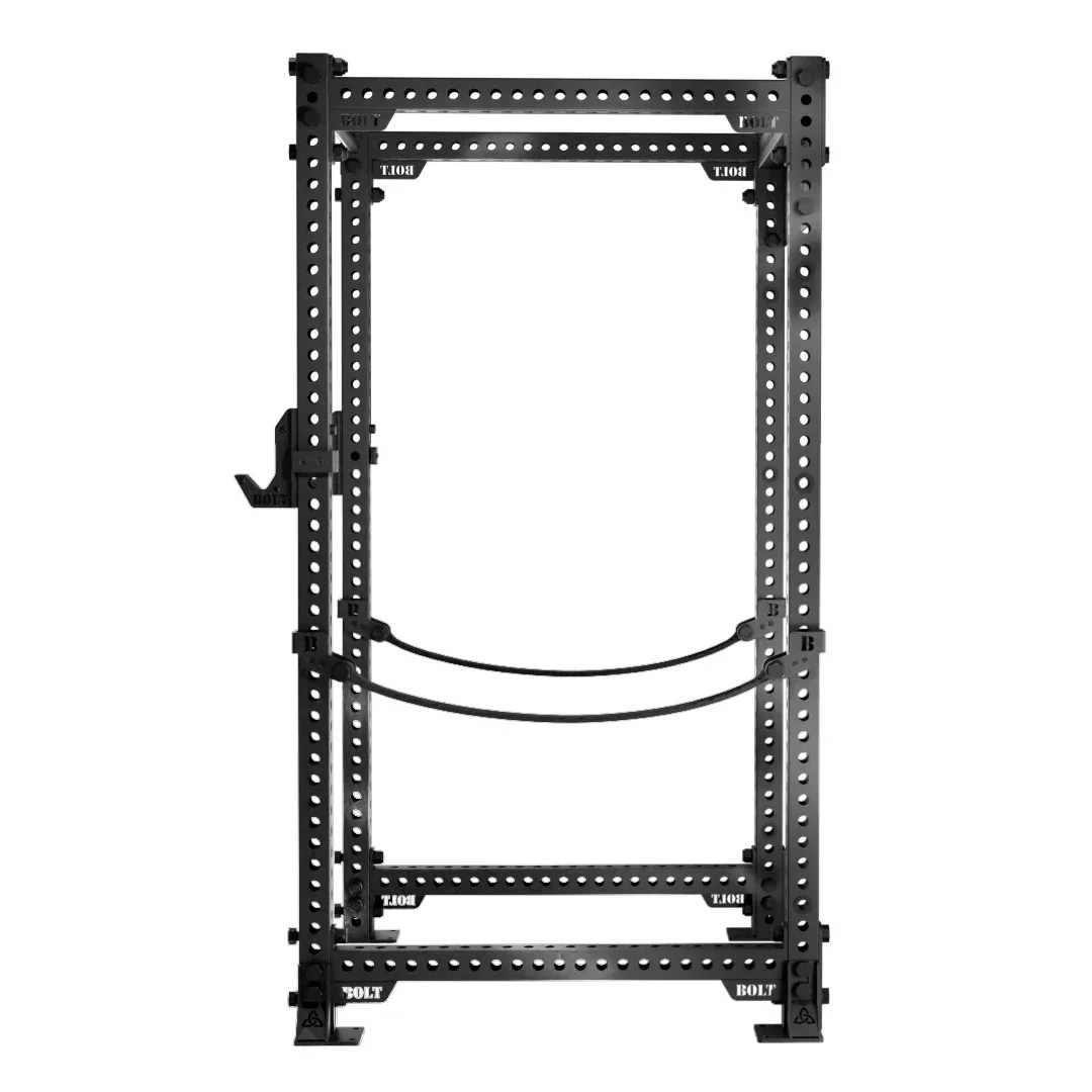 Standing tall (90 inches) among the Storm Series racks and rigs, we find the BARBARIAN with its laser-etched numbers, standard 3" wide sling bridges, its 7-gauge steel bridge brackets with J-cups, its sleek black-powder coat of paint, and a wide array of optional attachments. The BARBARIAN, as well as the other Storm Series platforms, are designed to meet the needs of commercial gyms, collegiate and high school facilities, and dedicated athletes everywhere.